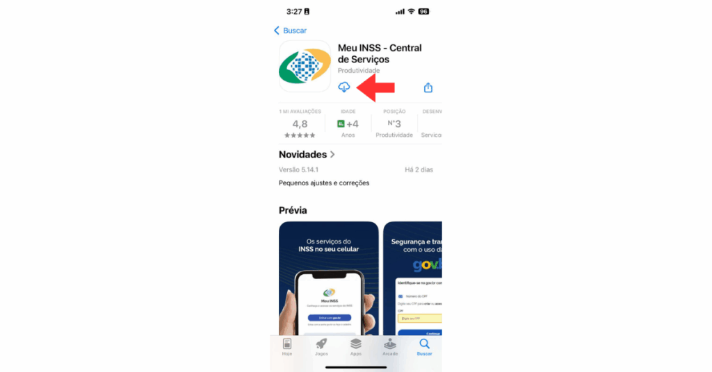 Após a instalação, o ícone do Meu INSS aparecerá na tela inicial do seu celular. Toque nele para abrir.