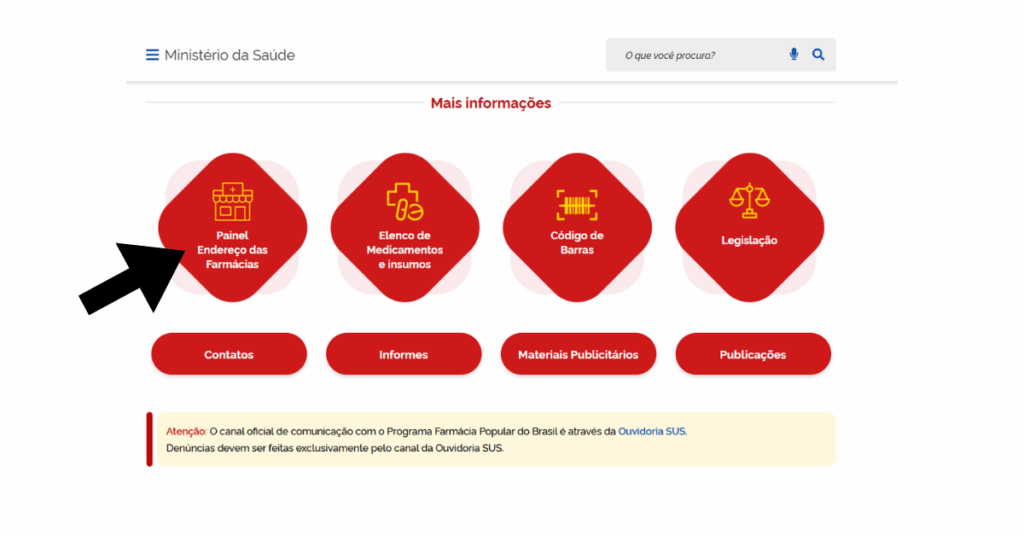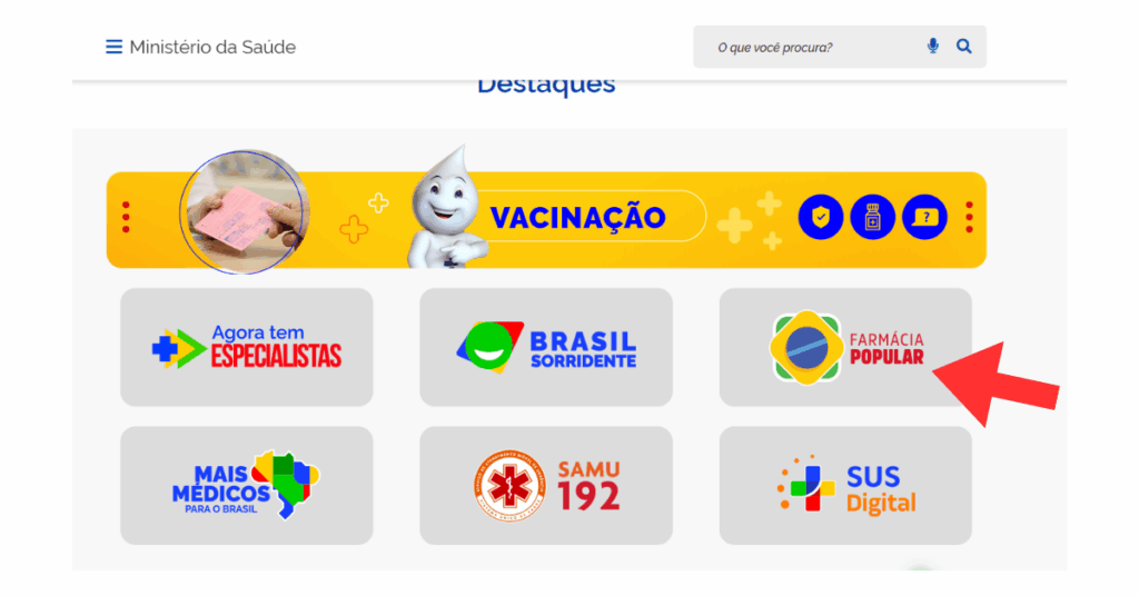1️⃣ Acesse o site oficial do Ministério da Saúde → procure por Farmácia Popular.