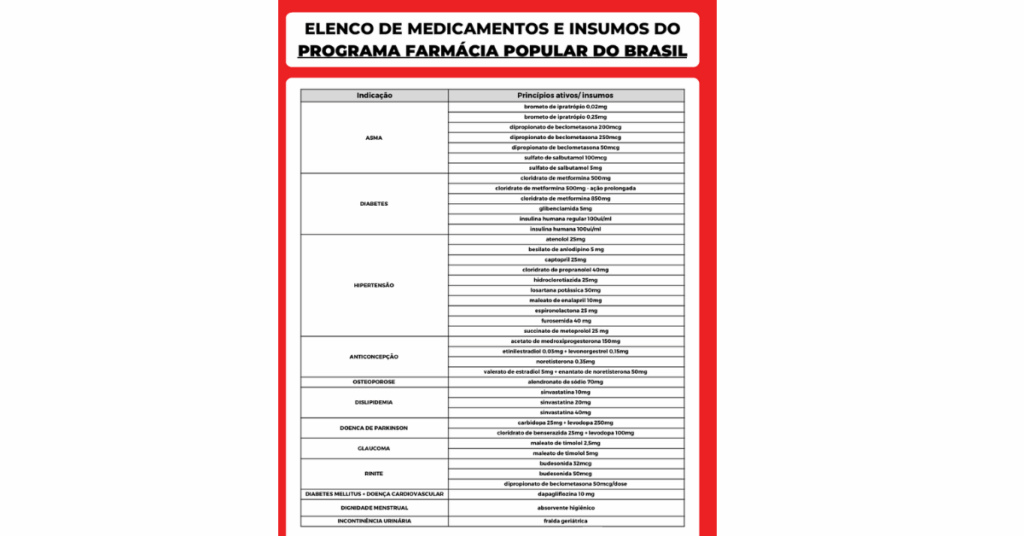 Lista de medicamentos e doenças atendidos pela farmácia popular