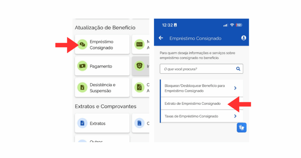 3️⃣ Escolha a opção “Extrato”. Verifique a lista de contratos ativos.