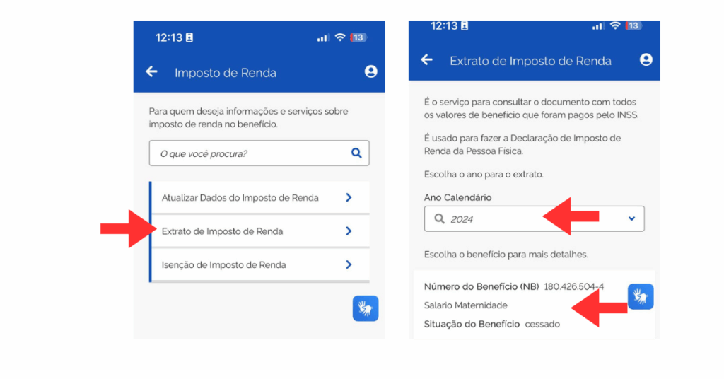 👉 Escolha “Extrato” e informe o ano e benefício desejado.
