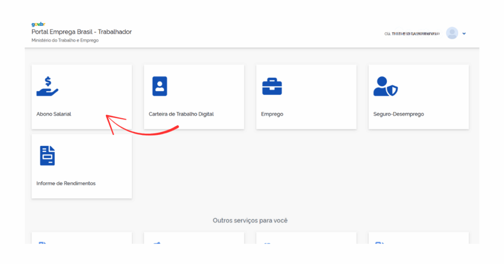 3️⃣ Em alguns casos será necessário confirmar alguns dados, antes de continuar. Quando o aplicativo abrir, clique em “Abono salarial”. Confira se há saldo disponível e como sacar.