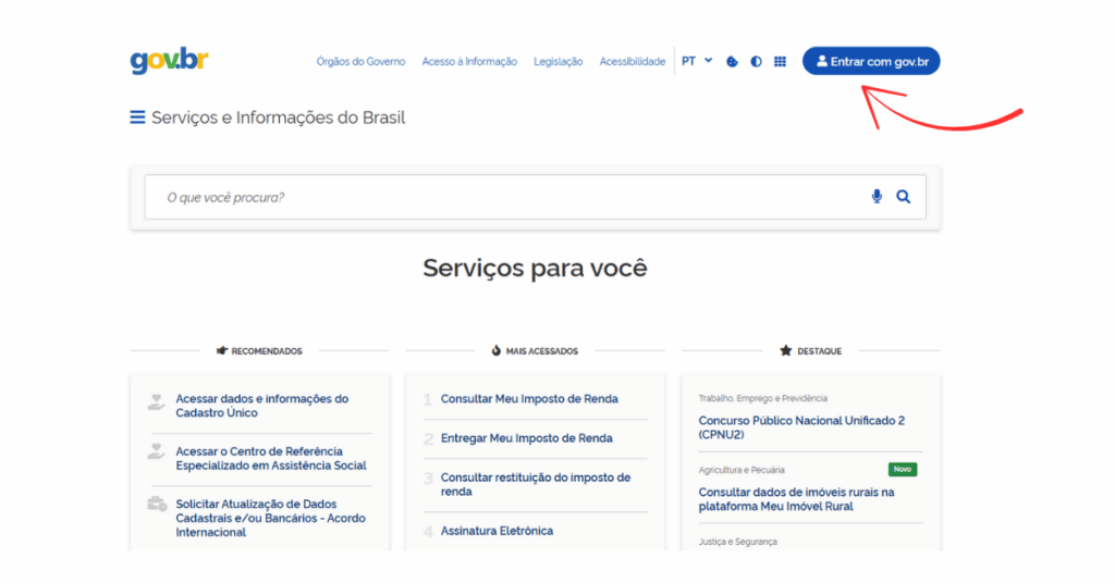 👉 Acesse www.gov.br e faça login com seu CPF e senha.